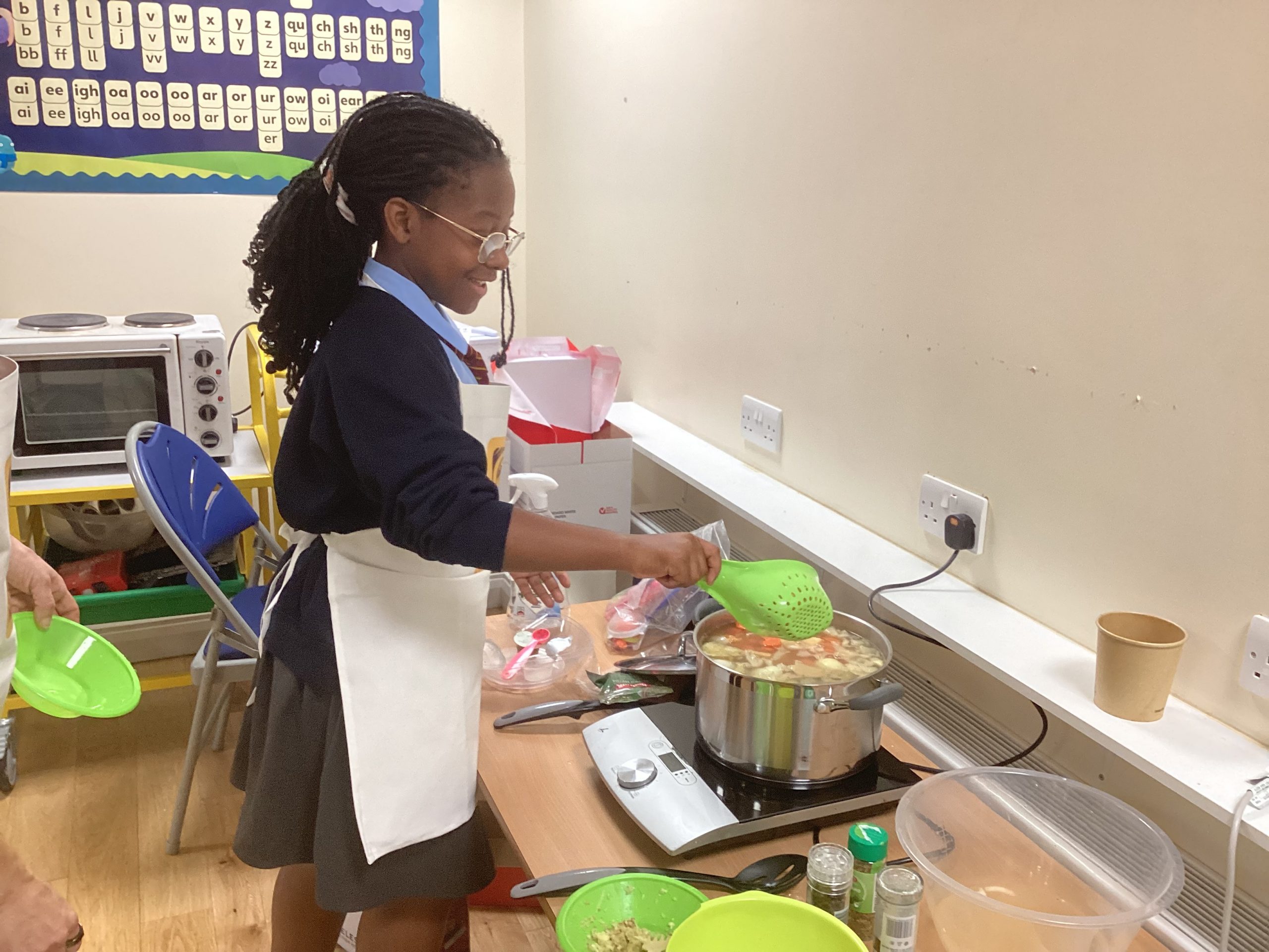 Last week, Jannine from Garden Gurus returned to work with our Eco-Council, bringing more amazing lessons in sustainability and seasonal eating! The children learned all about seasonal vegetables and how using what we grow helps reduce waste and support an eco-friendly lifestyle. They prepared everything themselves — peeling and chopping carrots, potatoes, pumpkins and onions, and grating fresh ginger and garlic. With Jannine’s help, they added all the ingredients to a big pot, boiled the veggies, then blended them with a stock cube to create the most delicious pumpkin soup. The children personalised their bowls with coriander, sour cream, salt or pepper, and enjoyed their soup with crusty bread — with plenty left to take home! A brilliant hands-on experience showing how growing, cooking and eating sustainably can be both fun and tasty! #EcoCouncil #Sustainability #SeasonalEating #GardenGurus.